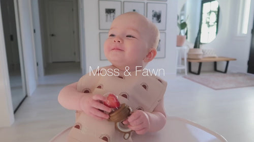 Introducing solids is a big step and such an exciting moment! It is also a very important stage for your babies development, and you will start to enjoy your baby's sticky face and gooey hands. You'll be building the foundation for a lifetime of healthy eating. As exciting as that first bite may be, it can also seem scary. Some babies will be so eager to try that first bite that they may bite off more than they can chew or not know how to swallow just yet. That is what the Moss and Fawn forage feeder is there for! The feeder has small holes that only allow small bits of food to pass through, making it a worry-free solution to introducing solids.